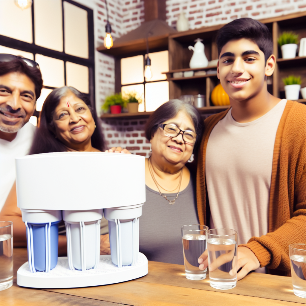 ## Image (Prompt): A general view of a family in a cozy kitchen using a generic water filtration device, symbolizing health-conscious lifestyle choices.